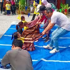 Cultural fun where players wear sarong while playing football-style challenges.
